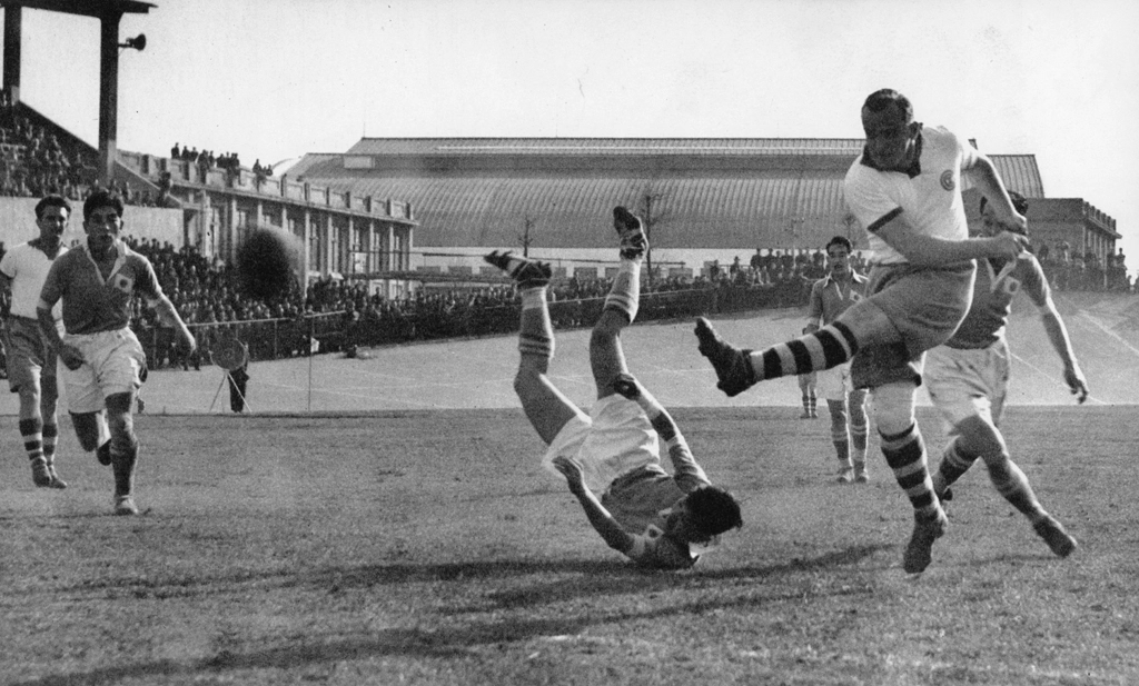 Download Button   「強シュート (全日本とスイスのサッカークラスの名門グラスホッパーとの対戦)」 中井赳夫 (1955年1月22日)