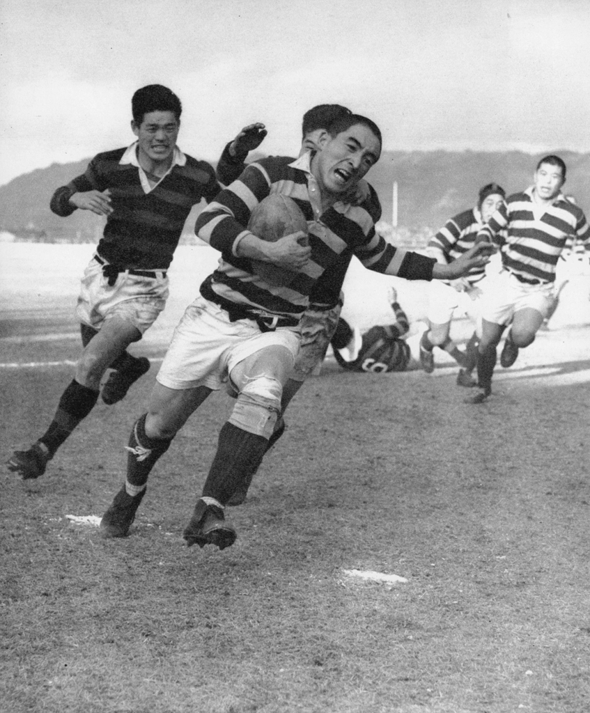 Download Button   「宮井の突進 (東西大学ラグビー 関学vs明大戦」 藤木高嶺 (1955年1月2日))