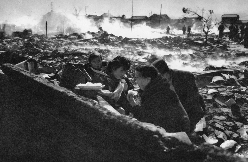 Download Button   「焼跡の食事 (福岡県築上町の火事による被災者)」 高村広 (1955年1月31日)