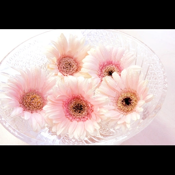 2種類の水に浮かべたガーベラの花の写真