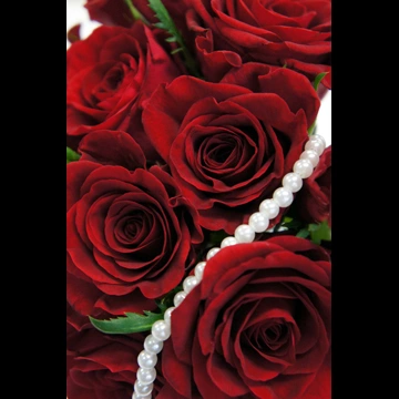 2種類のバラの花と真珠のネックレスの写真