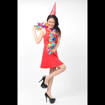 5種類のパーティーを楽しむ赤いドレス姿の女性のポートレート写真