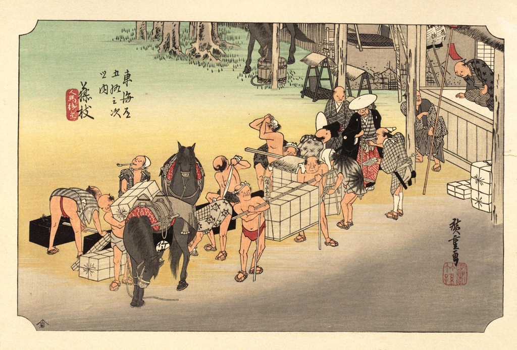 Download Button   「東海道五拾三次之内 藤枝 人馬継立」 歌川広重