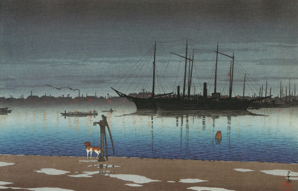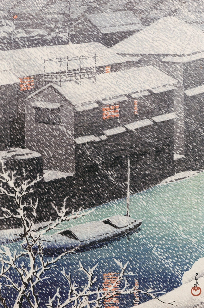 Download Button   「東京二十景 月島の雪」 川瀬巴水 (1930年)
