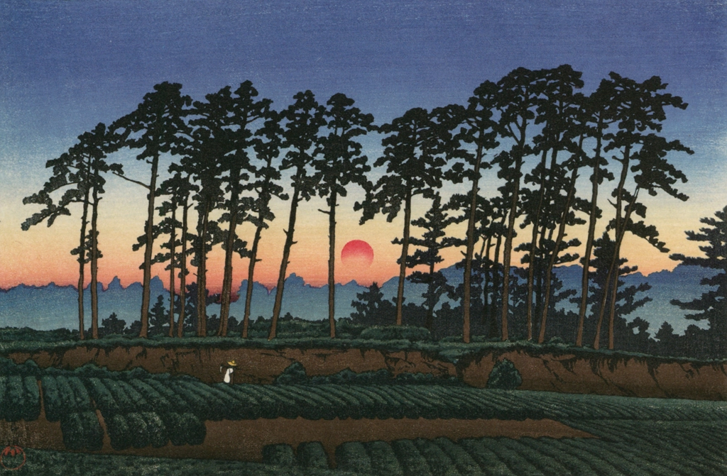 Download Button   「東京二十景 池上市の倉 (夕陽)」 川瀬巴水 (1928年)