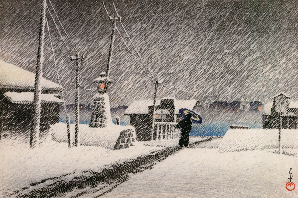 Download Button   「代地の雪」 川瀬巴水 (1925年)