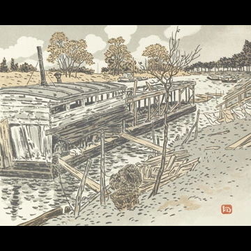 「エッフェル塔三十六景 バ・ムードンより、古い共同洗濯場」 アンリ・リヴィエール (1902年)