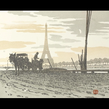 「エッフェル塔三十六景 パッシー河岸より、石炭商人」 アンリ・リヴィエール (1902年)