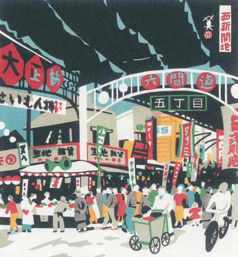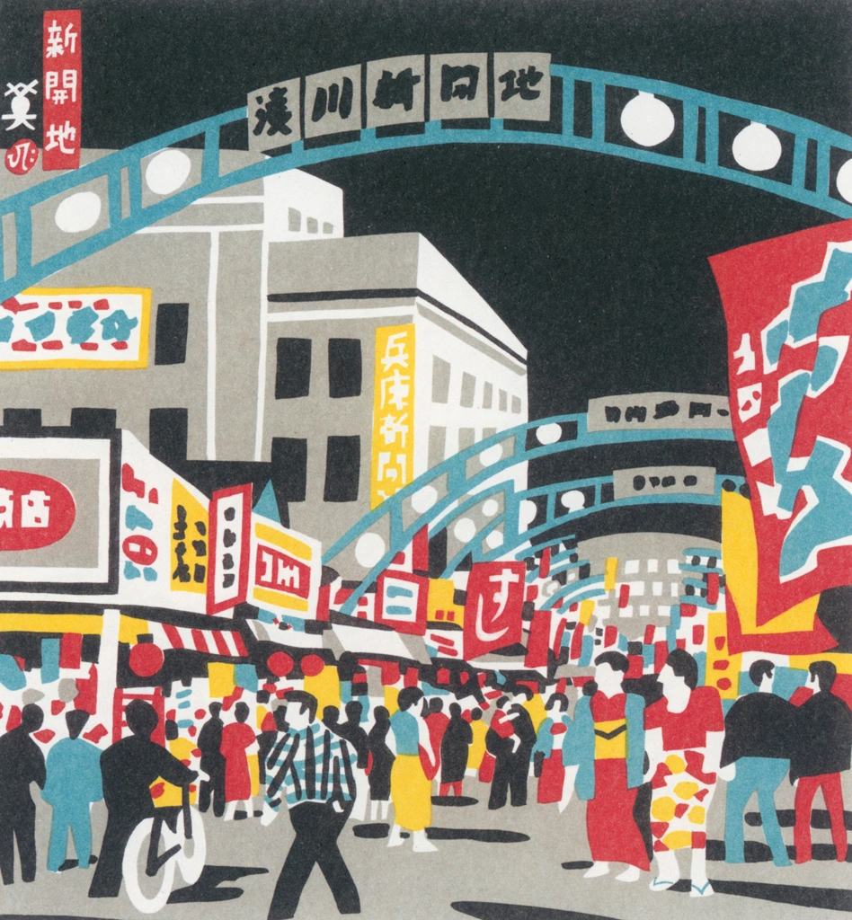 Download Button   「柳原十日戎」 川西英 (1965年)