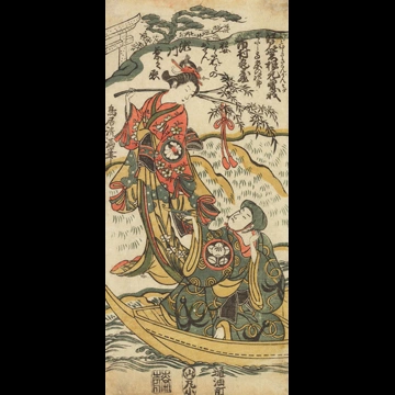 「江戸紫根元曾我 初代市村亀蔵のわたし守京の次郎と二代目瀬川菊之丞の狂女みだれがみのおせん」 鳥居清満 (1761年)