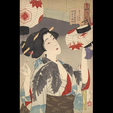 「おきがつきさう 明治年間西京仲居之風俗」 月岡芳年 (1888年)