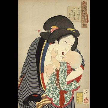 「風俗三十二相 かわゆらしさう 明治十年以来内室の風俗」 月岡芳年 (1888年)