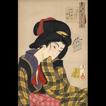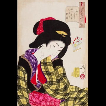 「風俗三十二相 はづかしさう 明治年間むすめの風俗」 月岡芳年 (1888年)